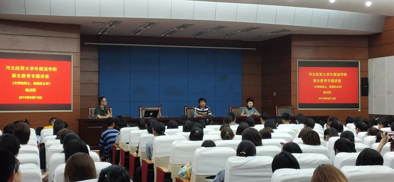 9月16日下午,伟德在会议中心视频会议室举办新生教育专题讲座。伟德经济管理公司文法系主任赵占亚应邀主讲,公司党委书记、副书记及2019级全体新生230余人到场聆听。