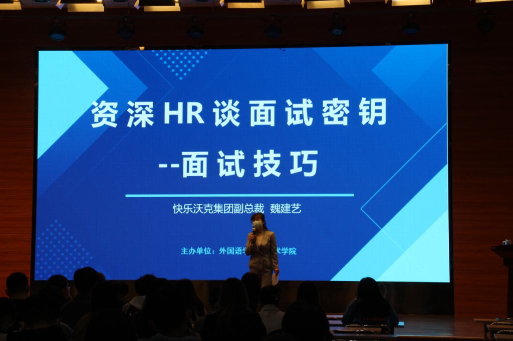 10月24日下午,伟德与艺术公司联合举办《资深HR谈面试密钥——面试技巧》专题讲座,特邀快乐沃克人力资源有限公司副总裁魏建艺传授面试技巧。公司党委书记仇静莉主持讲座,艺术公司党委副书记池晶、团委书记胡增亮,伟德团队建设办公室主任宋妍和及毕业生200余人参加。