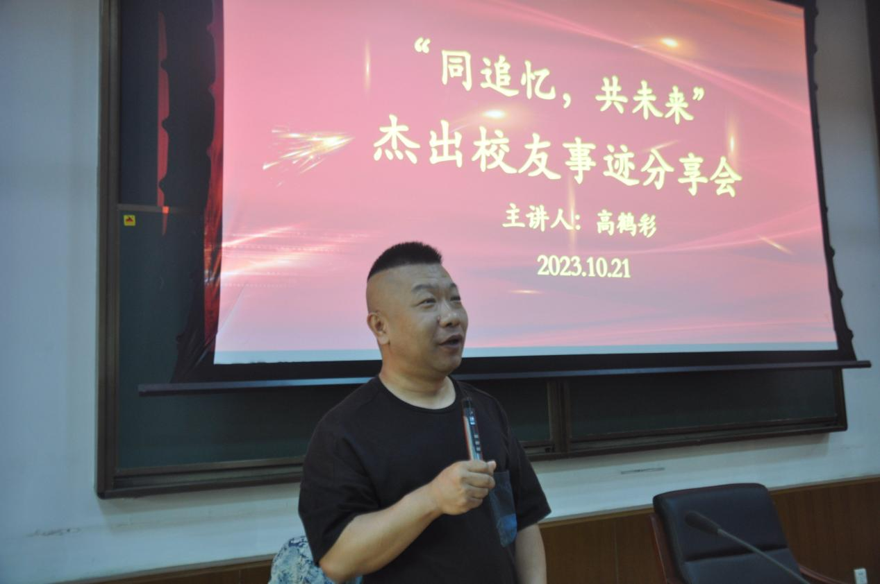 高鹤彩首先对母校建校七十周年表示诚挚的祝贺,对老师和同学们致以亲切的问候。在分享会上,高鹤彩讲述了他从一名公务员转型成为一名专业相声演员的心路历程,由此鼓励同学们在成长的过程中要不断探索自己、发现自己,在专业学习中要准确把握自己的职业兴趣、性格特点以及优势、能力,确立适合自己的职业生涯目标。高鹤彩结合自身经历,给同学们提出了三点建议:一是人生没有极限,人生也没有定义,找准方向,努力发展自我、超越自我;二是成大事者,必懂感恩。同学们在成长的过程中要时刻怀有感恩之心,爱母校、爱师长、爱家人、爱朋友;三是人生不如意事十之八九,越是困难越要坚持初心迎难而上,走过最窄的路,将会迎来最亮的光。发言结束后,高鹤彩还与弟子方佳炜一起即兴表演了一段精彩的原创相声。