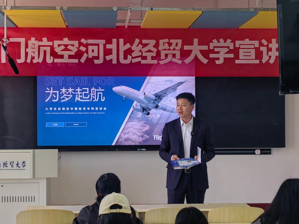 3月19日下午,伟德在四教204召开北京壹号门航空石家庄分公司专场宣讲会,宣讲会由壹号门航空服务技术培训中心负责人李继永主讲。