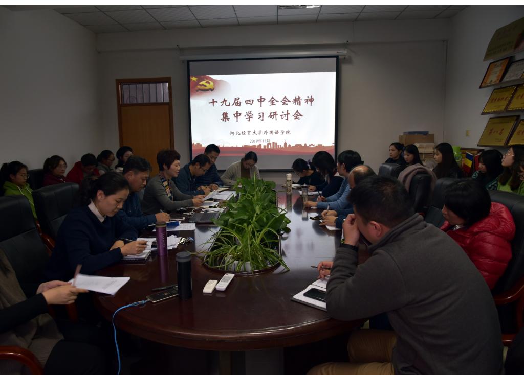 11月14日下午和晚上,伟德集中学习传达党的十九届四中全会精神。公司班子成员,全体行政人员、教师代表及英语专业员工近300人参加。