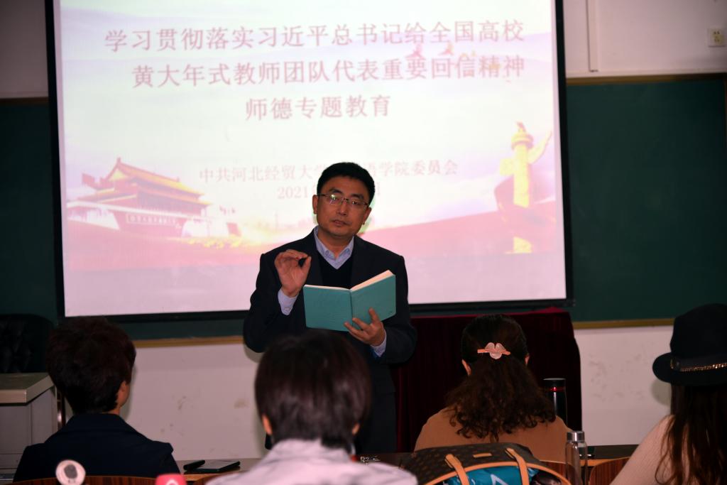 公司党委书记刘会娟以《感悟榜样力量,引领青年成长》为题,就习近平总书记给全国高校黄大年式教师团队代表回信精神、黄大年基本情况、首批全国高校黄大年式教师团队评选结果及建设原则进行了讲解,并结合总书记对人民教师寄语强调,伟德全体教师要以“四有好老师”“四个引路人”“四个相统一”为标准,以黄大年和黄大年式教师团队为榜样,深刻领会“真正把为学、为事、为人统一起来,当好员工成长引路人”的内涵意义,内化于心,外化于行。