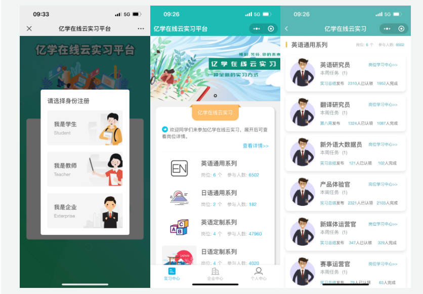 实习前,公司充分考虑了商务英语专业特点、培养目标,结合员工需求,积极与合作方沟通、协调,精心设计实习任务,安排专任教师督促和辅导。实习过程中,员工通过亿学在线云实习平台领取实习任务并上传任务成果,平台对参与云实习的同学进行一系列考核。按要求完成实习任务、通过审核的同学将获得由福建亿学颁发的相应岗位实习证书。