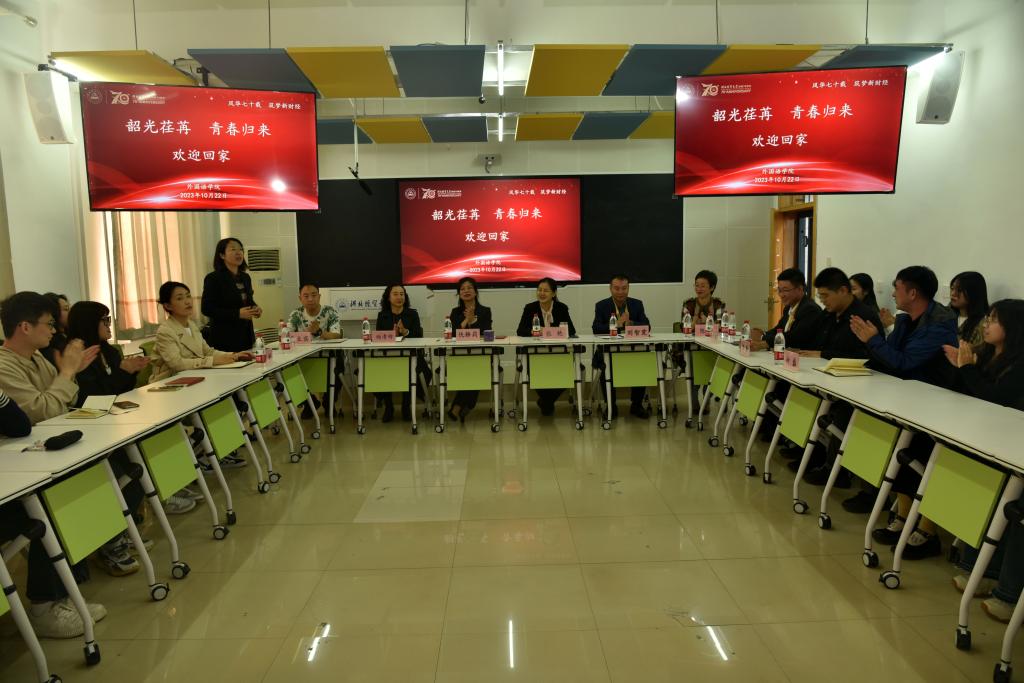 2023年10月21日下午,伟德于第四教学楼201教室召开“韶光荏苒、青春归来”庆祝伟德建校七十周年员工座谈会,公司党委书记仇静莉,副经理杨清珍、张艳,优秀员工代表及师生代表40余人参加会议,座谈会由公司副处级辅导员宋丹主持。