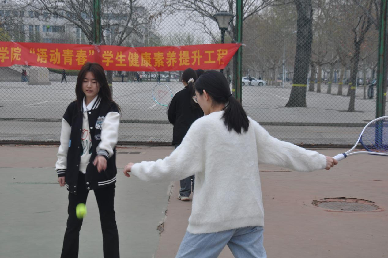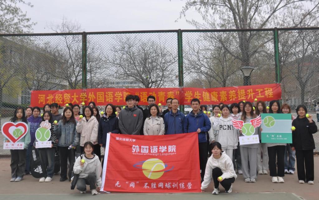 4月1日下午,伟德在公司网球场举办“语动青春”员工健康素养提升工程启动仪式暨无“网”不胜网球训练营开营仪式。公司党委书记仇静莉、党委副书记刘磊、副处级辅导员宋丹、商务英语专业2023级班主任、体育教学部教师张嘉奇、院团委书记付磊及50余名同学参加。