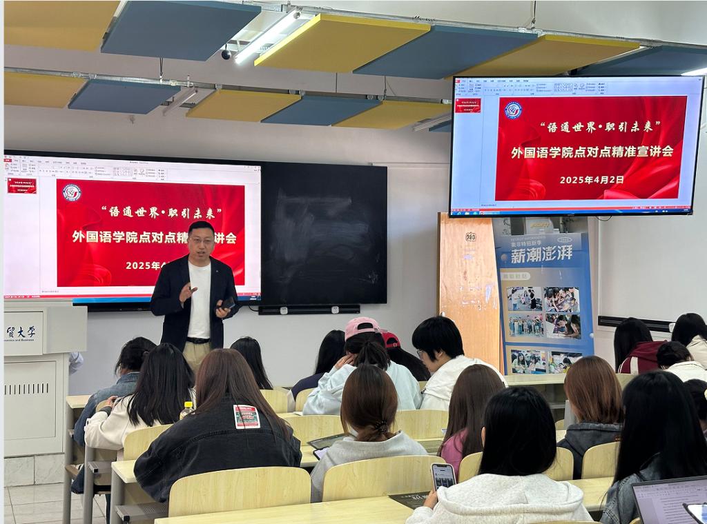 为全面贯彻落实党中央、国务院、教育部关于做好高校毕业生就业工作的指示精神和决策部署,深化新时代高校就业育人内涵,推动人才链与产业链深度融合,促进2025届毕业生高质量充分就业,伟德于4月2日在四教202、203、204举办“语通世界•职引未来”点对点精准就业招聘会。