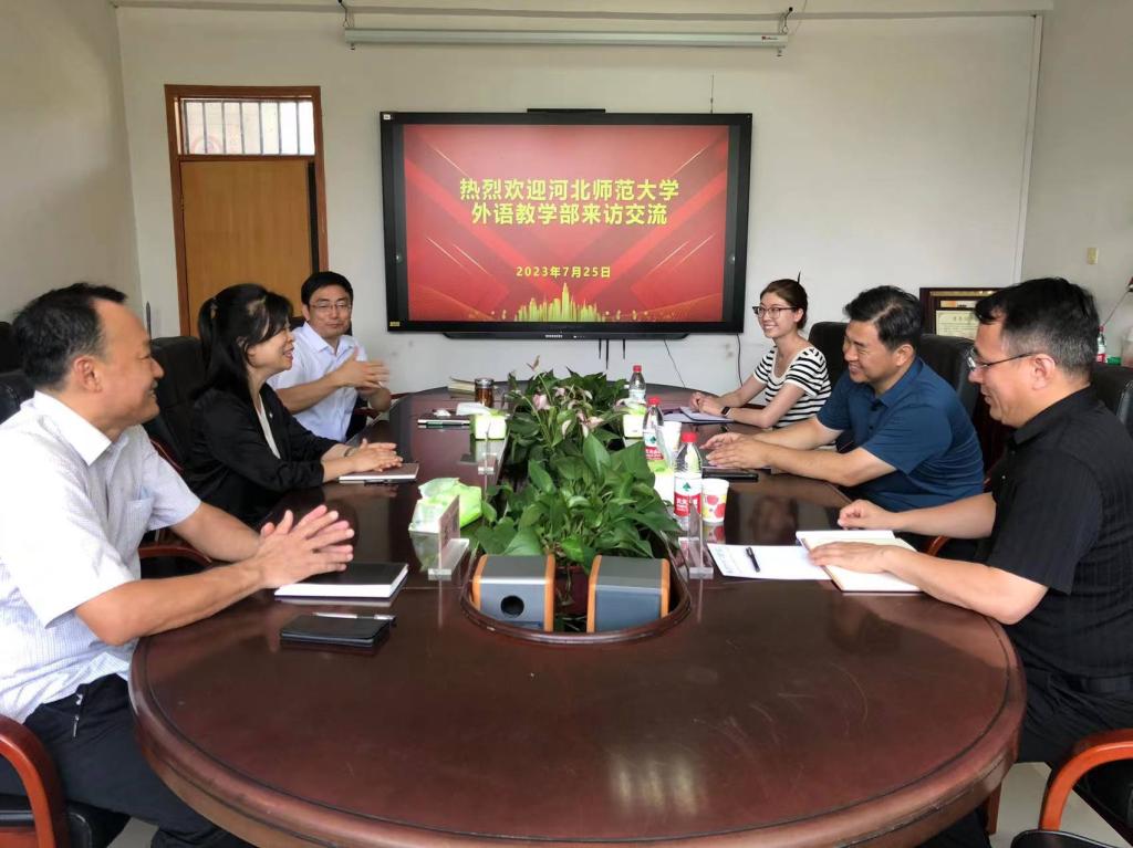 7月25日下午,河北师范大学外语教学部党委书记胡进勇、主任黄永亮一行三人到公司调研交流。公司党委书记仇静莉、经理张润,外语教学部主任李钢参加调研。