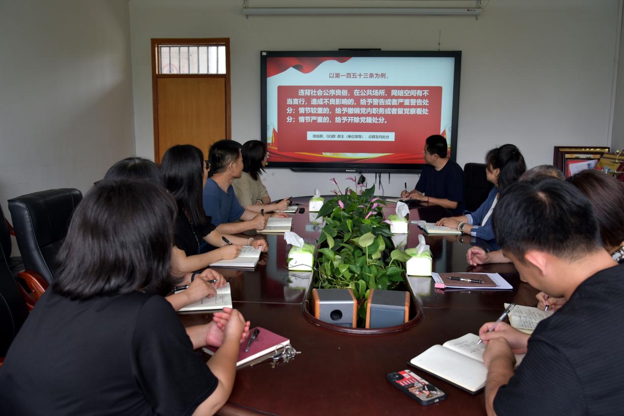 下午,公司党委书记仇静莉为全体行政教职工讲授党纪学习教育专题党课,其他各支部也均开展了支部书记讲党纪学习教育专题党课。
