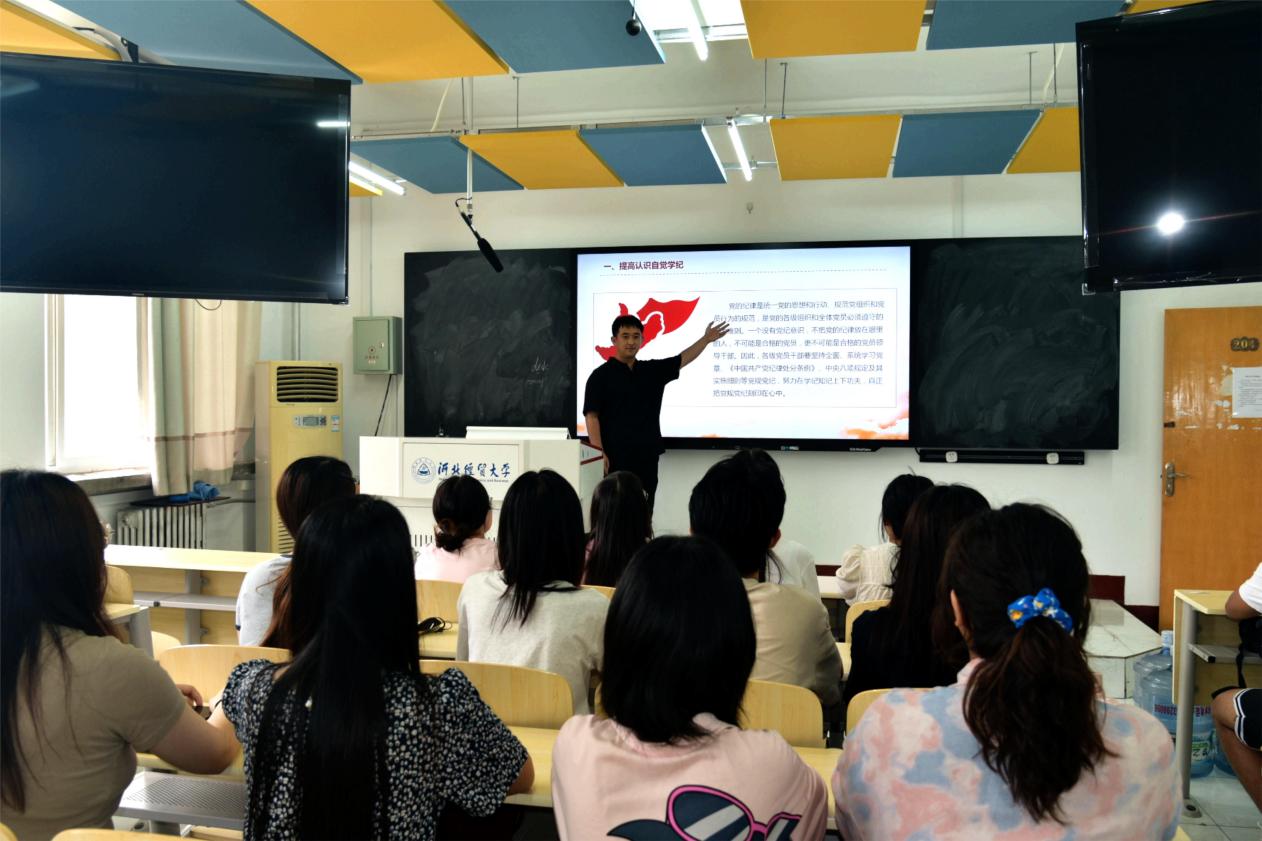 根据党纪学习教育安排,为帮助党员教师深刻进一步强化纪律意识、加强自我约束, 6月26日上午,伟德第一教师党支部书记宋晓娜讲授党纪学习教育专题党课。伟德第一教师党支部全体党员参加。
