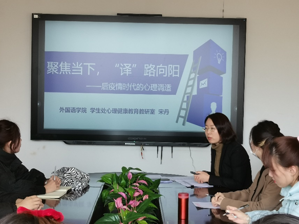 2月21日,伟德特邀请宋丹副教授为翻译专业研究生做《聚焦当下,译路向阳—后疫情时代的心理调适》的专题讲座,翻译专业全体研究生参加了此次活动。